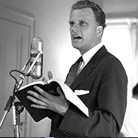 Dr Billy GrahamBilly Graham was born on June 15, 1918 in Charlotte, North Carolina, and from an early age preached in his hometown church before launching the first of his world‑shaping “crusades” in Chicago in 1949. Over the next six decades he conducted twelve major U.S. crusades, five in Africa, and several others in Australia, Japan, and the Philippines, amassing a reach of over 215 million live attendees and millions more through radio, television, film, and the web. His broadcasts—including the long‑running Hour of Decision—became pioneering examples of televised evangelism, while his personal outreach to every U.S. president from Truman to Obama, his early support for civil rights, and his public call for racial reconciliation cemented him as a political and social influencer as well as a religious icon.